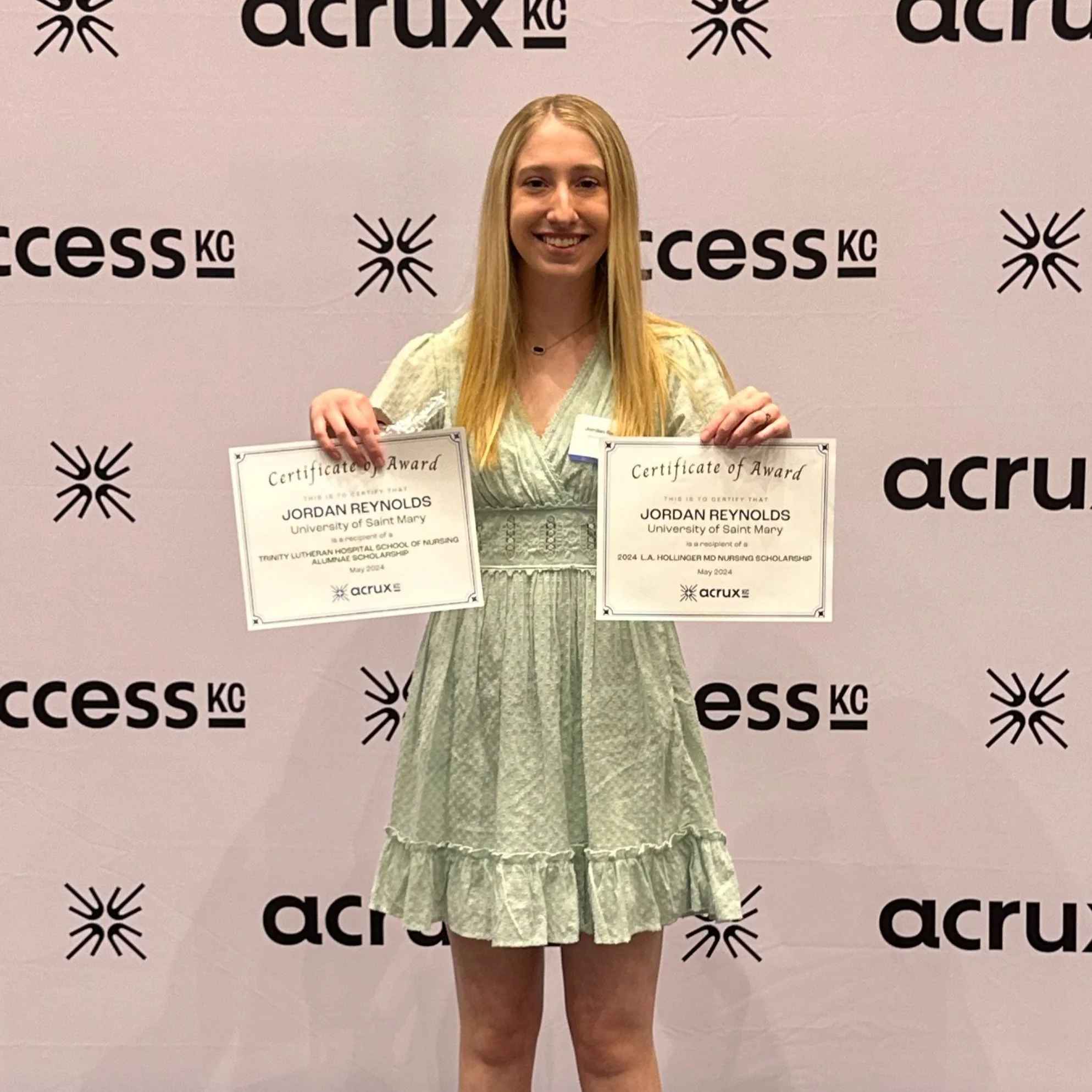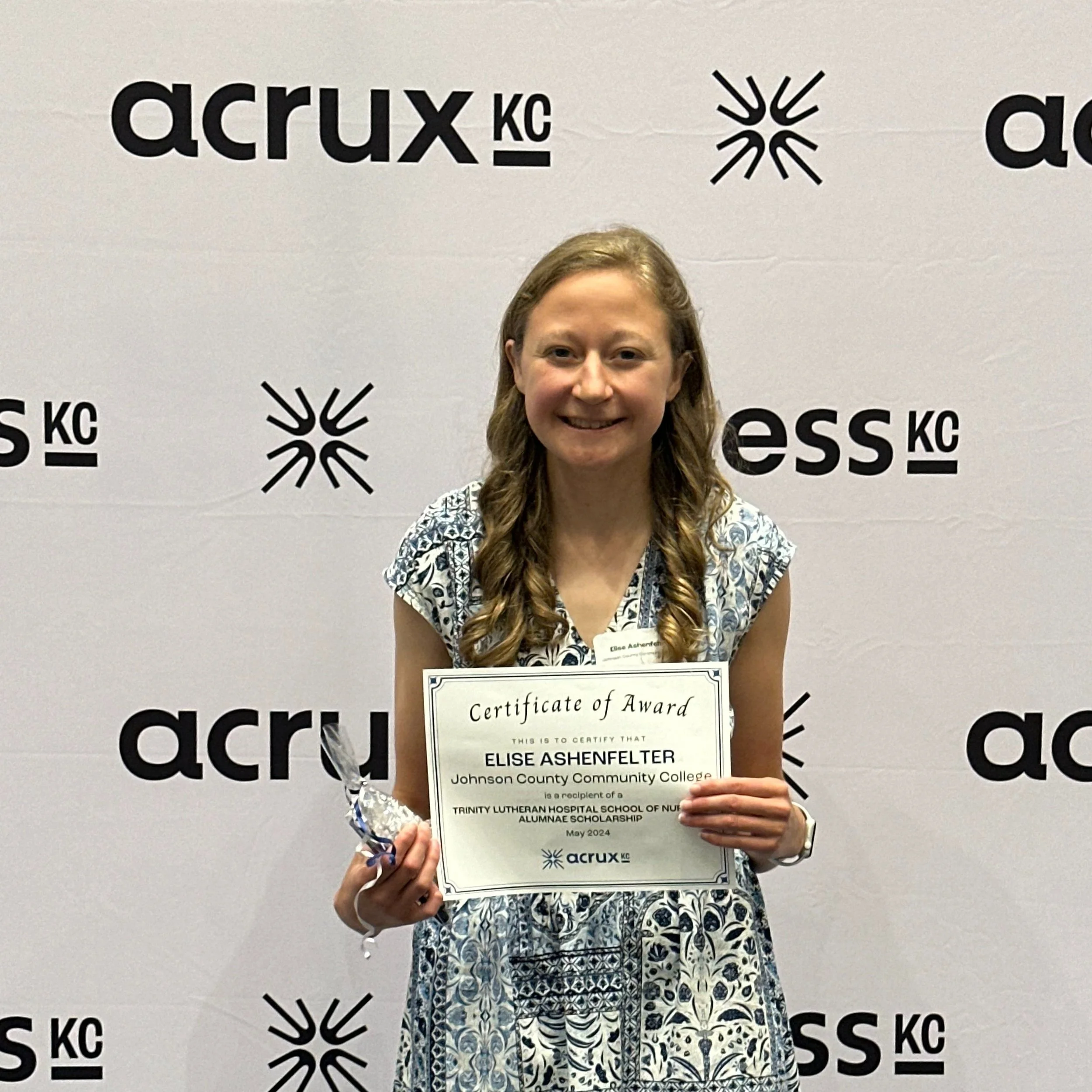 One of the highlights of the luncheon was the presentation of the scholarship awards. AcruxKC awarded a total of $174,600 in nursing scholarships for the 2024-2025 academic year. Applicants from 25 different universities across the United States competed for the prestigious Trinity Lutheran Hospital School of Nursing Alumnae Scholarship and the L.A. Hollinger, MD Scholarship. Each recipient present at the Luncheon received a certificate representing their awards and a small token as a reminder of the nursing past and current supporters behind them. You can view the full list of scholarship recipients here.